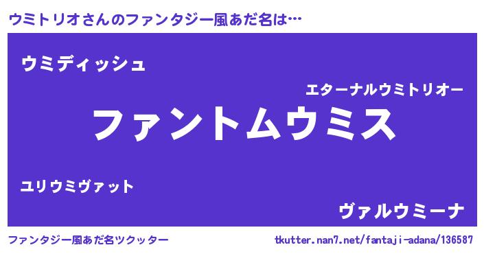 | 男性向けラノベタイトル風あだ名 | 『ダンジョンにウミトリオを求めるのは間違っているだろうか』 |