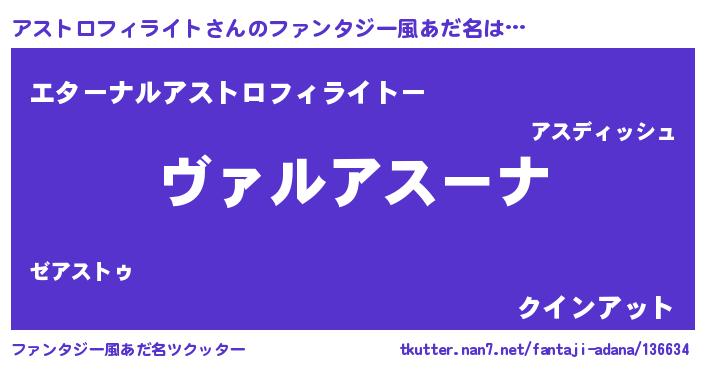 | 男性向けラノベタイトル風あだ名 | 『この素晴らしい世界にアストロフィライトを!』 |