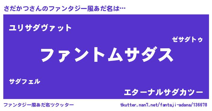 | ヒーロー風カッコイイあだ名 | 『幻影騎士サダ』『ウルトラさだかつマン』 |