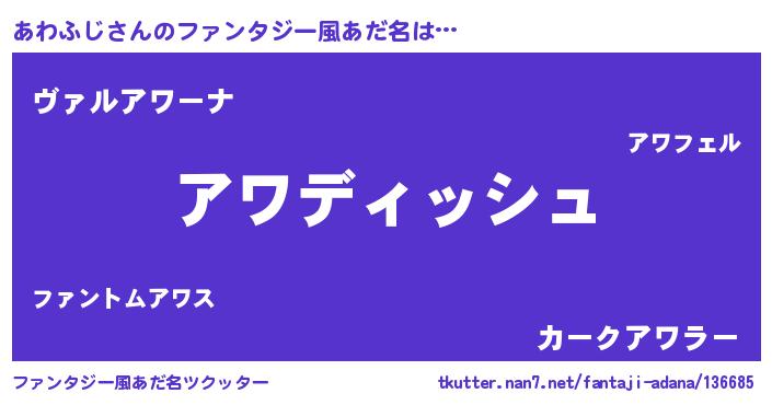| 男性向けラノベタイトル風あだ名 | 『あわふじに滅ぼされるだけの簡単なお仕事です』 |