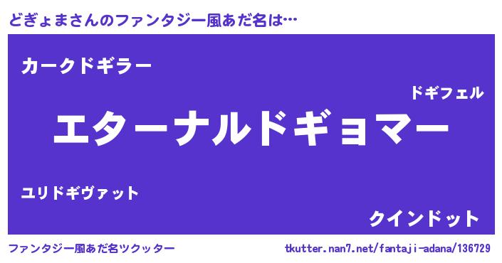 | 男性向けラノベタイトル風あだ名 | 『うちの娘の為ならば、俺はもしかしたらどぎょまも倒せるかもしれない。』 |