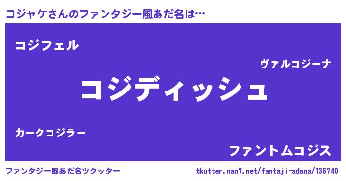 | 男性向けラノベタイトル風あだ名 | 『コジャケという概念が存在しない退屈な世界 』 |