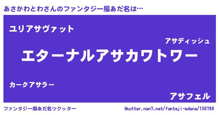 | 意味不明あだ名 | 『あさかわとわフォーエバー』 |