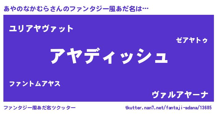 | 男性向けラノベタイトル風あだ名 | 『あやのなかむらという概念が存在しない退屈な世界 』 |
