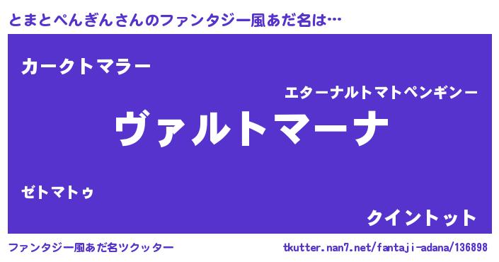 | 意味不明あだ名 | 『住所不定無職とまとぺんぎん(77歳)』 |