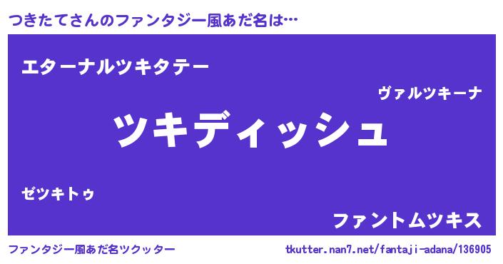 | 意味不明あだ名 | 『永久保存つきたて』『自称つきたて』 |