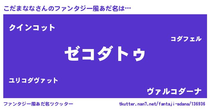 | 男性向けラノベタイトル風あだ名 | 『Re:こだまななから始める異世界生活』 |