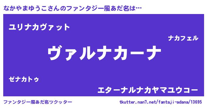 | 男性向けラノベタイトル風あだ名 | 『魔弾の王となかやまゆうこ』 |