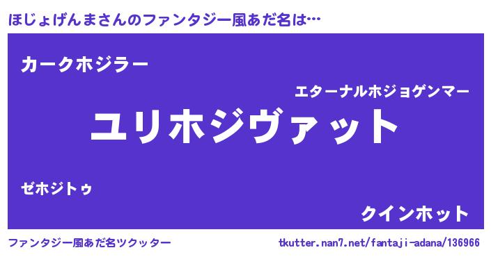 | 男性向けラノベタイトル風あだ名 | 『ほじょげんま~年齢イコール彼女いない歴の魔法使い~』 |