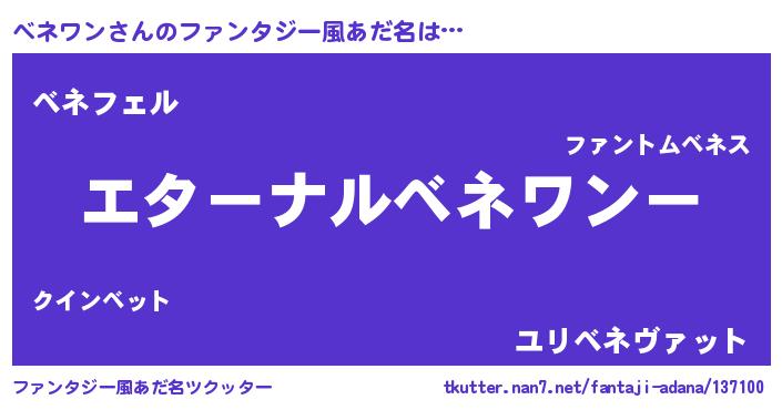 | 意味不明あだ名 | 『ベネワンフォーエバー』 |