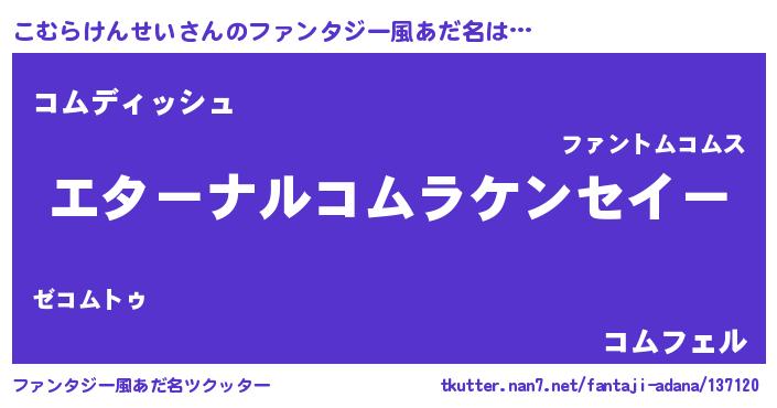 | ポケモン風あだ名 | 『コムラダネ』『ゼニコム』 |