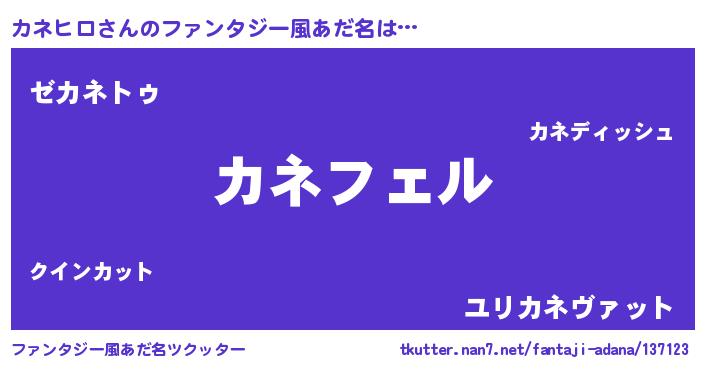 | 男性向けラノベタイトル風あだ名 | 『カネヒロの憂鬱』『カネヒロスレイヤー』 |