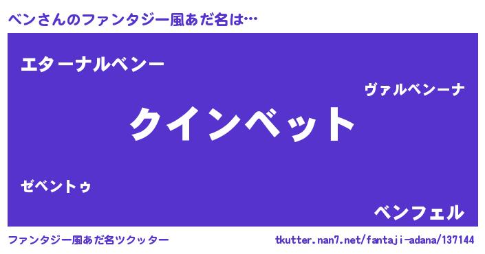 | ヘコむあだ名 | 『つくし』『ベンにー』『ベン(苦笑)』 |