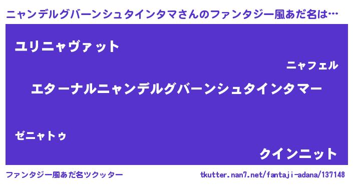 | 欧米人風あだ名 | 『ニャンデルグバーンシュタインタマクリステル』 |