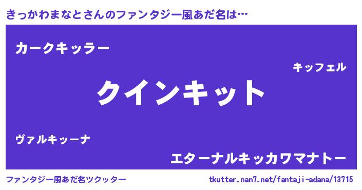 | 伝説のあだ名 | 『人々から恐れられる錬金術士きっかわまなと』 |