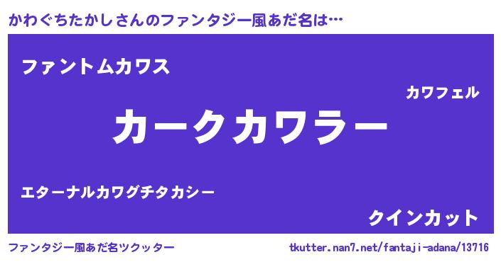 | 胡散臭い通販商品みたいなあだ名 | 『信頼と実績のサプリメント…その名も「かわぐちたかし」』 |