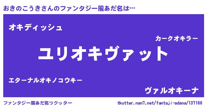 | 男性向けラノベタイトル風あだ名 | 『おきのこうき~年齢イコール彼女いない歴の魔法使い~』 |