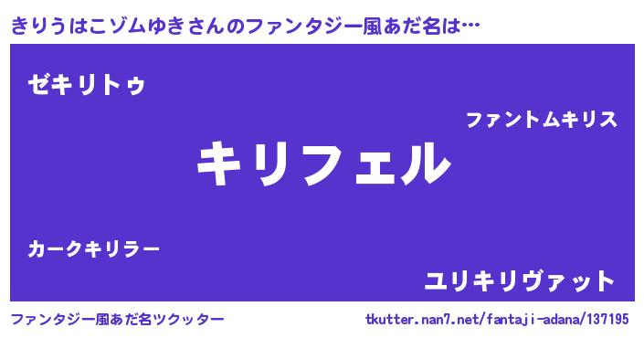 | 男性向けラノベタイトル風あだ名 | 『きりうはこゾムゆきの憂鬱』 |