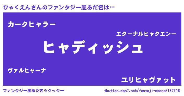 | ヒーロー風カッコイイあだ名 | 『ネオヒャクエン』『仮面ヒャダー』 |