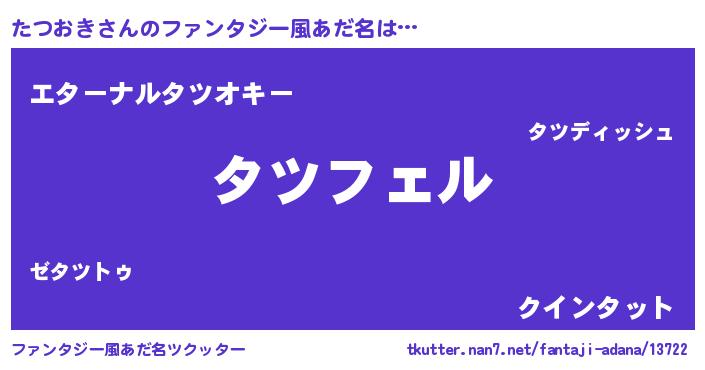 | 男性向けラノベタイトル風あだ名 | 『タツオキアートオンライン』 |