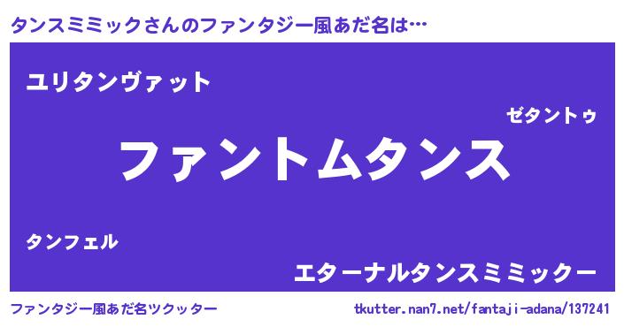 | ポケモン風あだ名 | 『ヒタンスミミック』『タンキング』 |