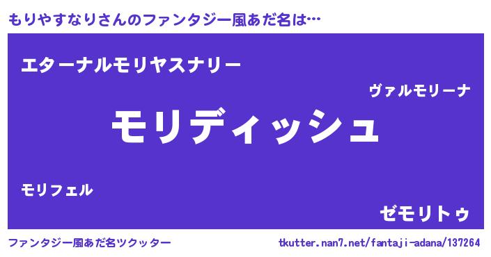 | 男性向けラノベタイトル風あだ名 | 『もりやすなりに滅ぼされるだけの簡単なお仕事です』 |