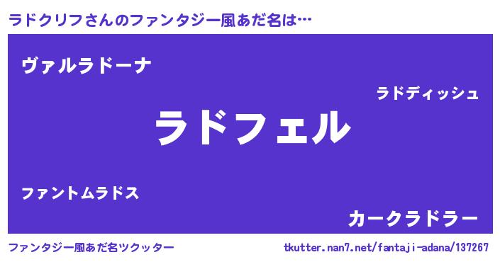 | 胡散臭い通販商品みたいなあだ名 | 『必ず成功する水晶球…その名も「ラドクリフ」』 |