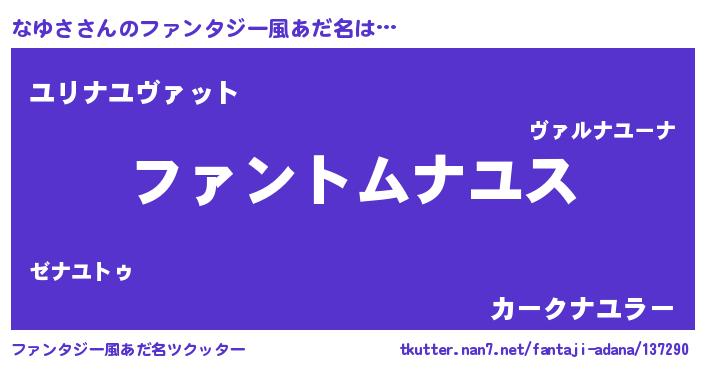 | 男性向けラノベタイトル風あだ名 | 『なゆさの嫁は女の子じゃないと思った?』 |