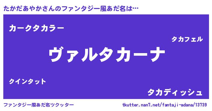 | 男性向けラノベタイトル風あだ名 | 『この素晴らしい世界にたかだあやかを!』 |