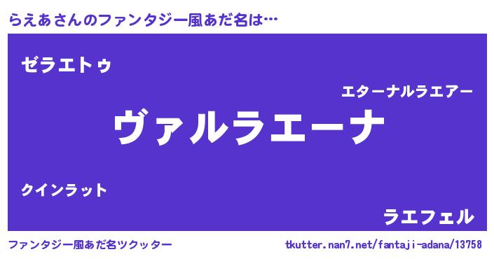 | 男性向けラノベタイトル風あだ名 | 『魔弾の王とらえあ』『らえあの憂鬱』 |
