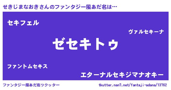 | 意味不明あだ名 | 『自称せきじまなおき』 |