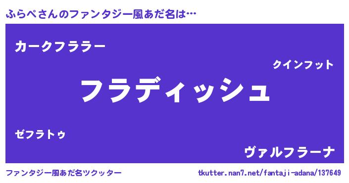 | 男性向けラノベタイトル風あだ名 | 『ふらぺという概念が存在しない退屈な世界 』 |