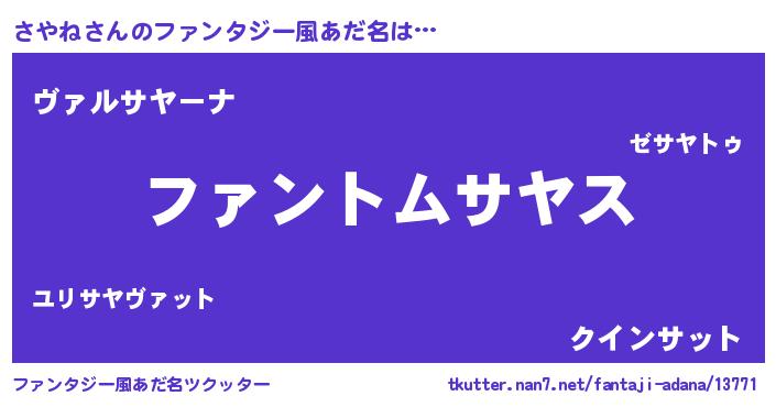 | ヒーロー風カッコイイあだ名 | 『炎刃騎士サヤ』『仮面サヤダー』 |