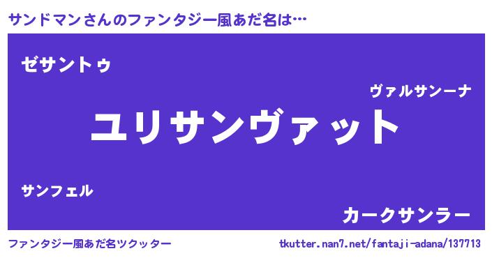| 男性向けラノベタイトル風あだ名 | 『転生したらサンドマンだった件』 |