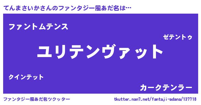 | 男性向けラノベタイトル風あだ名 | 『てんまさいか~年齢イコール彼女いない歴の魔法使い~』 |