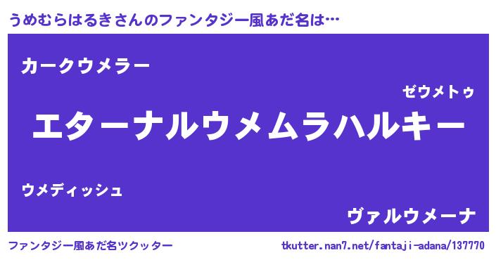 | 欧米人風あだ名 | 『うめむらはるきクリステル』 |