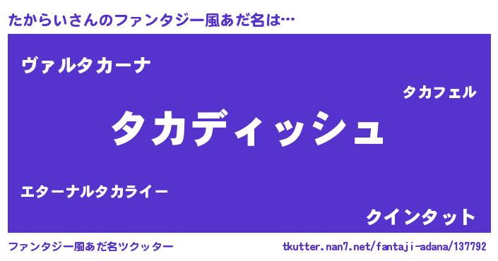 | 意味不明あだ名 | 『永久保存たからい』『ペロリンたからい』 |