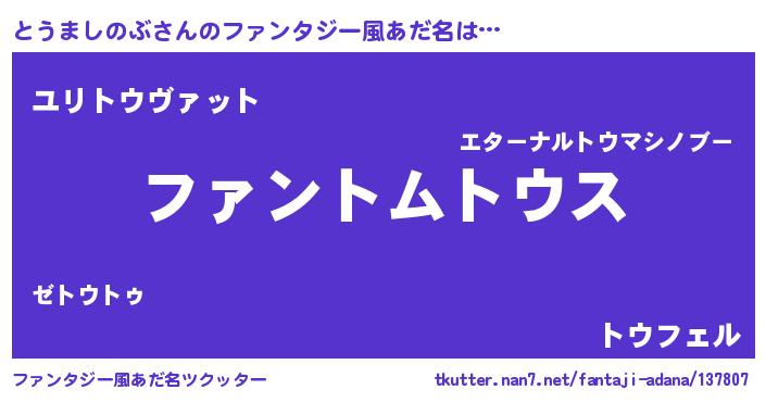 | ポケモン風あだ名 | 『ヒトウマシノブ』『トウキング』 |