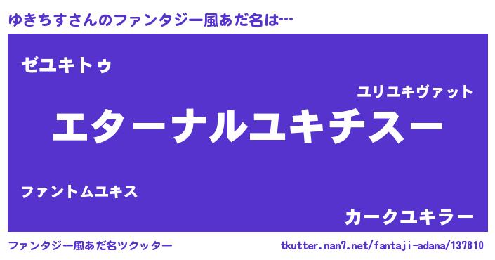 | 意味不明あだ名 | 『ゆきちすフォーエバー』『自称ゆきちす』 |