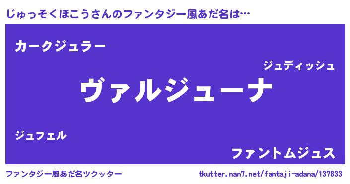 | 男性向けラノベタイトル風あだ名 | 『この素晴らしい世界にじゅっそくほこうを!』 |