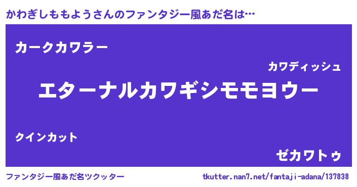 | 意味不明あだ名 | 『かわぎしももようフォーエバー』 |