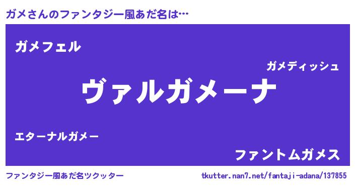 | ポケモン風あだ名 | 『ガーメイ』『ガメチュウ』『ヒガメ』 |