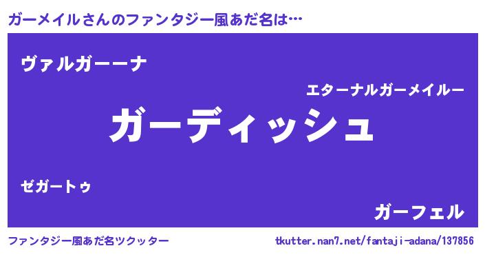 | 意味不明あだ名 | 『永久保存ガーメイル』『自称ガーメイル』 |