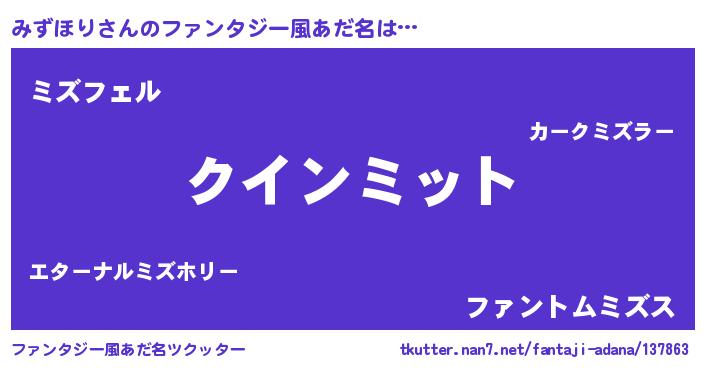 | ヒーロー風カッコイイあだ名 | 『慈愛の使者みずほり』『炎刃騎士ミズ』 |