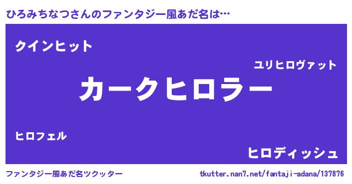 | ヘコむあだ名 | 『ひろみちなつ(苦笑)』『ひろにゅー』 |