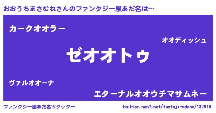| 男性向けラノベタイトル風あだ名 | 『Re:おおうちまさむねから始める異世界生活』 |