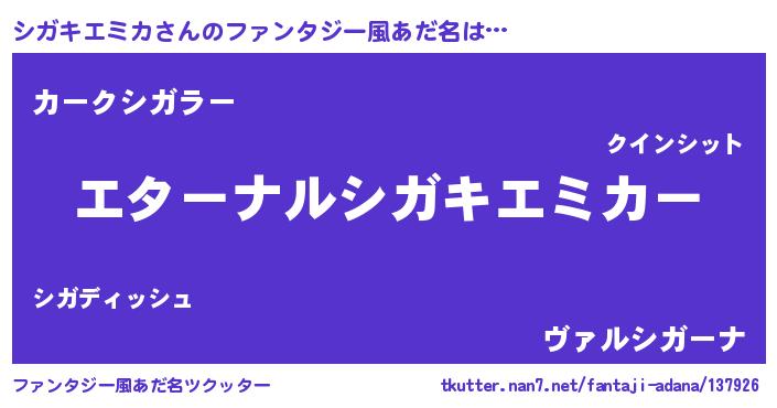 | ヒーロー風カッコイイあだ名 | 『ウルトラシガキエミカマン』 |