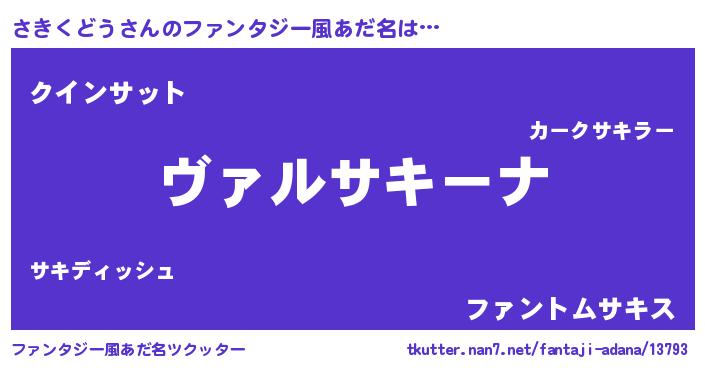 | 男性向けラノベタイトル風あだ名 | 『さきくどうに滅ぼされるだけの簡単なお仕事です』 |