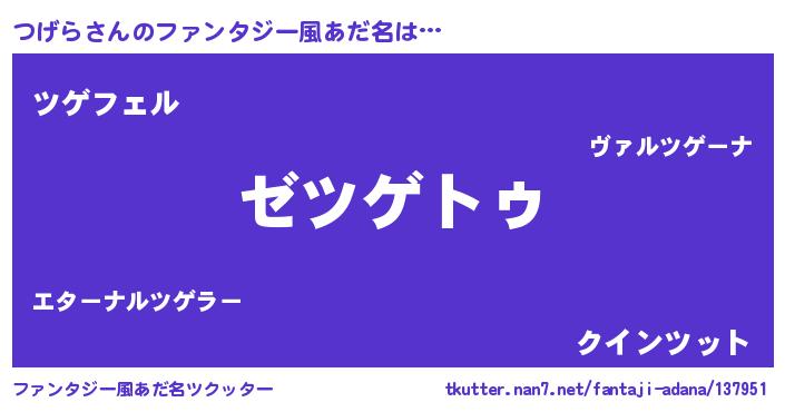 | ヒーロー風カッコイイあだ名 | 『究極戦士ツゲラ』『スーパーツゲラ』 |