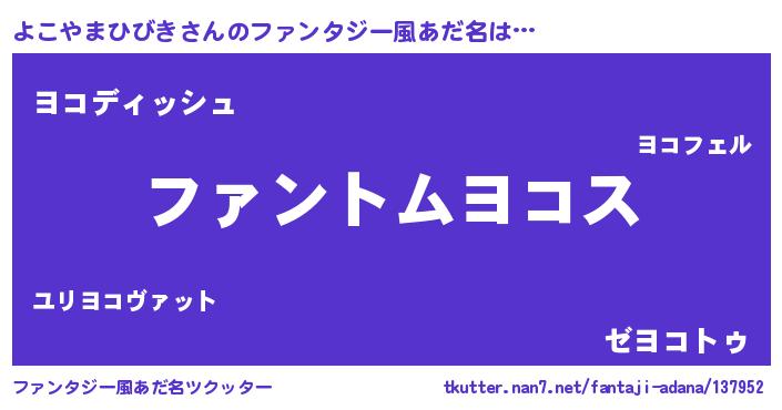 | ヒーロー風カッコイイあだ名 | 『暗黒騎士ヨコ』『ネオヨコヤマヒビキ』 |